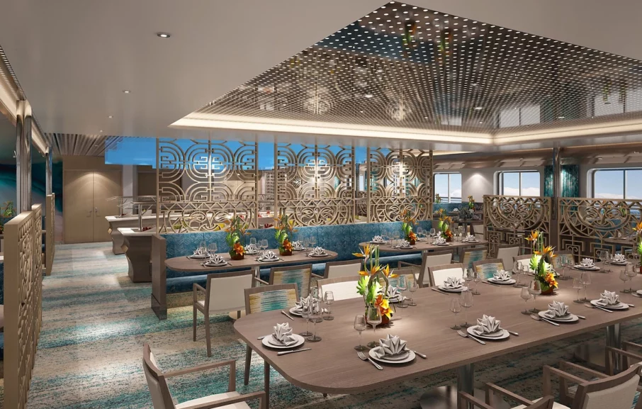 Dans la salle à manger, vous savourerez les délices d’une cuisine française et polynésienne dans un cadre chaleureux et familial. Une bouteille de vin pour 4 personnes est incluse pour les repas pris à bord.