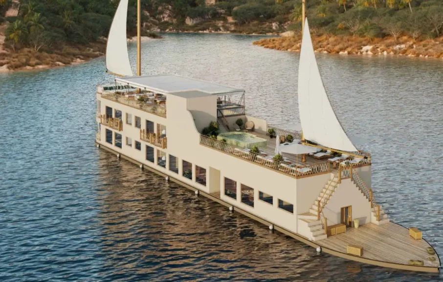 Conçue comme une embarcation traditionnelle à voile (sans moteur), cette nouvelle dahabeya a été lancée fin 2024. Elle rassemble 8 cabines et suites pouvant accueillir jusqu’à 16 adultes et s’étend sur 3 ponts.
