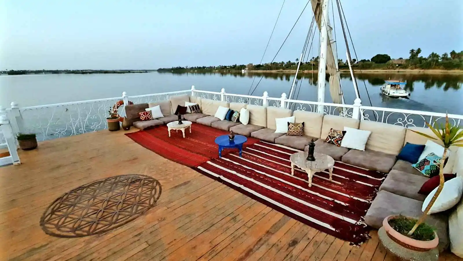 • Un bateau remorqueur accompagne la dahabeya au cas où le vent viendrait à manquer.