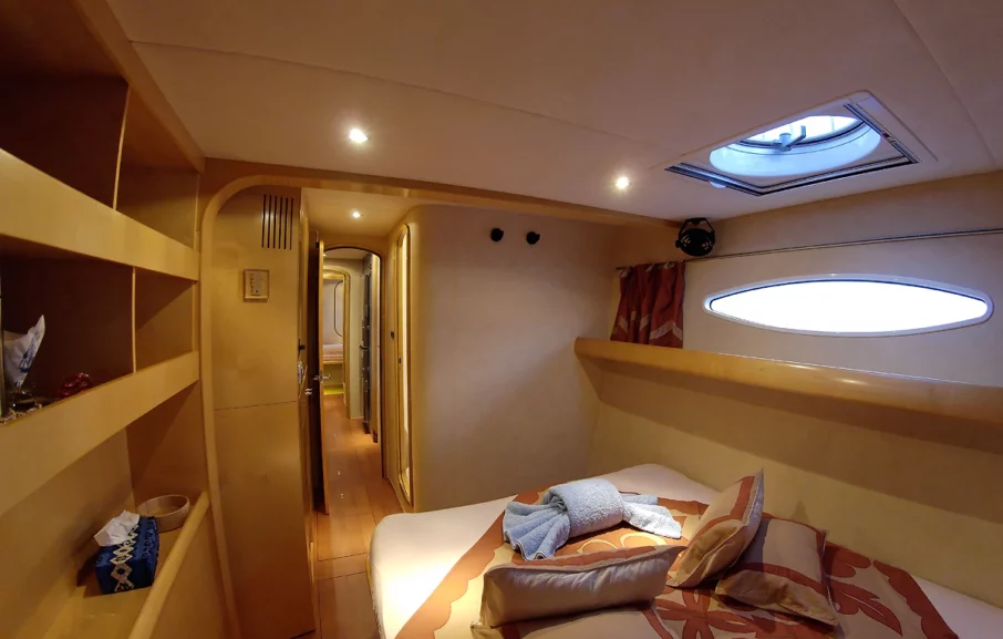 • 1 cabine double supérieure (pouvant accueillir 2 adultes + 1 enfant de moins de 12 ans).