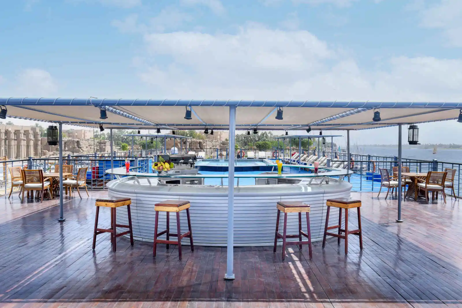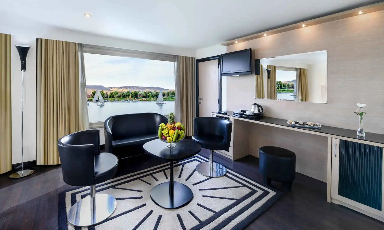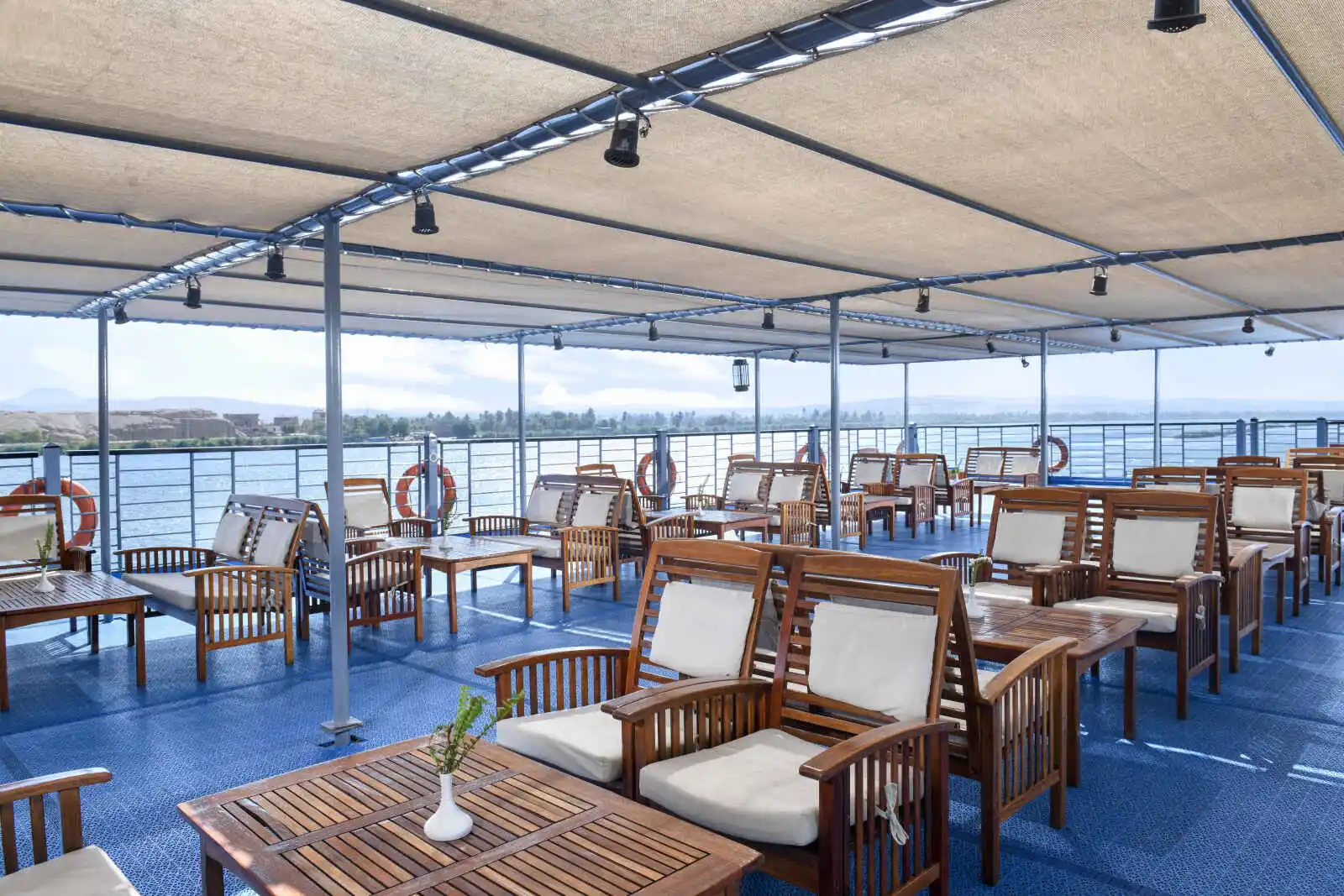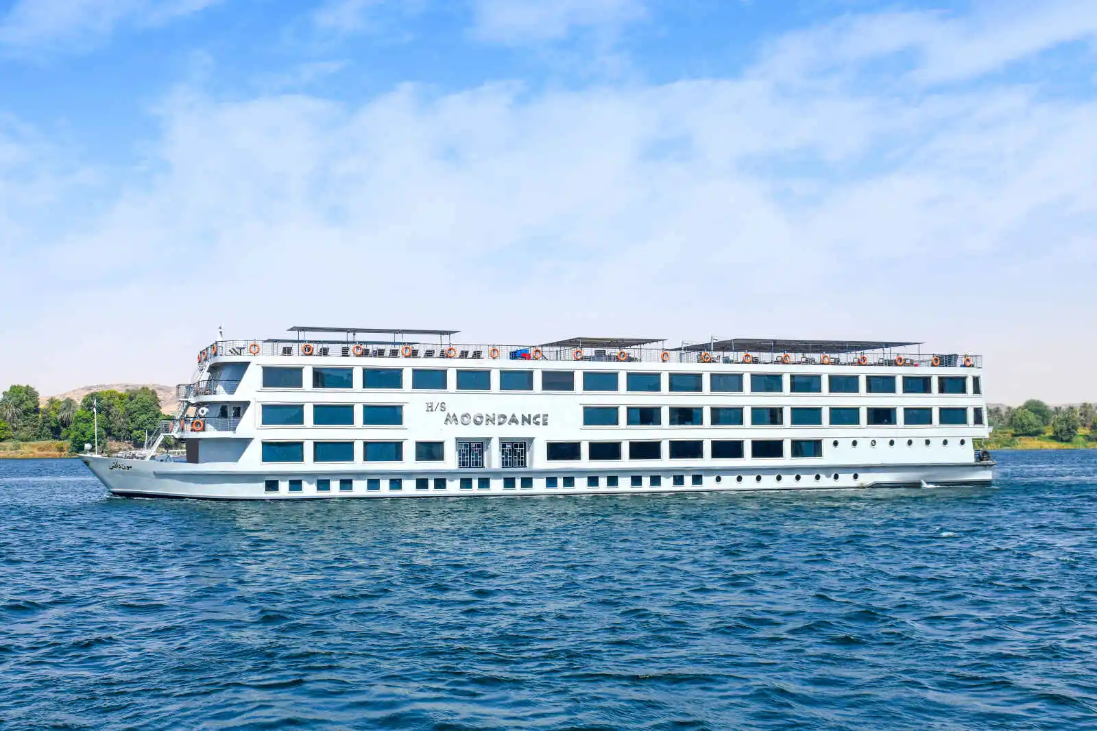 Le H/S Moondance allie un design épuré et un service de qualité. Les cabines marient bois, verre et acier et offrent un confort moderne. Durant votre temps libre, vous pourrez profiter des bienfaits d’une séance au Spa ou admirer les paysages somptueux qui s’égrènent le long du Nil depuis le pont soleil.