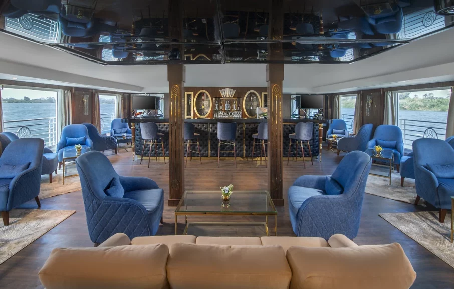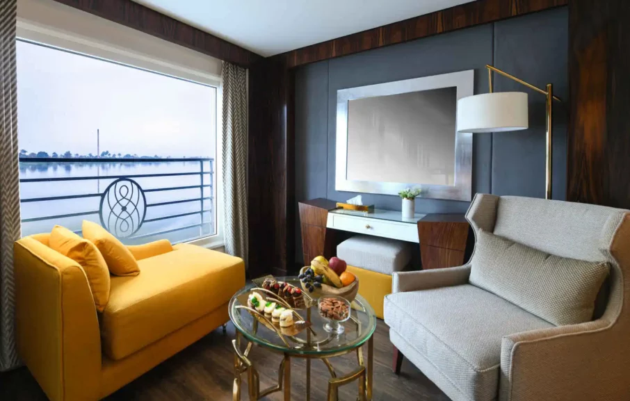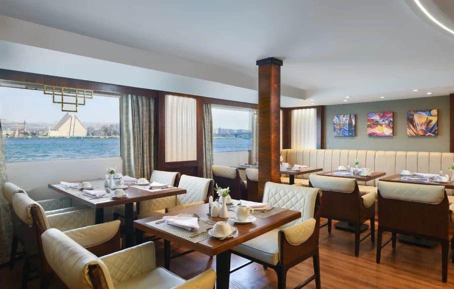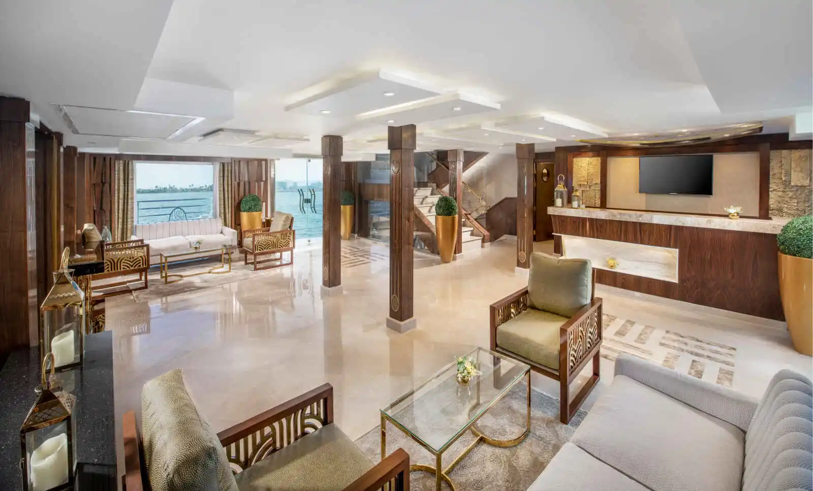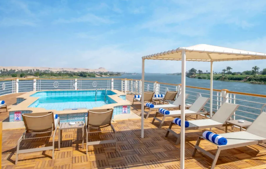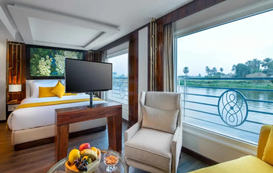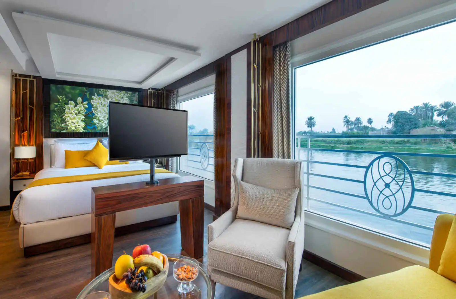 - Les cabines doubles situées sur le pont principal sont équipées de 2 lits simples alors que les cabines du pont supérieur sont équipées d’1 lit double.