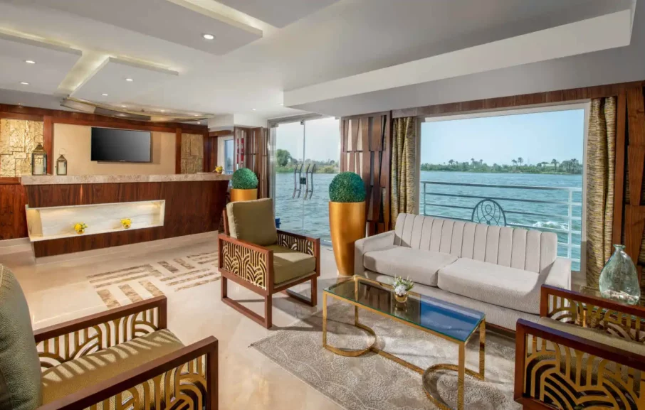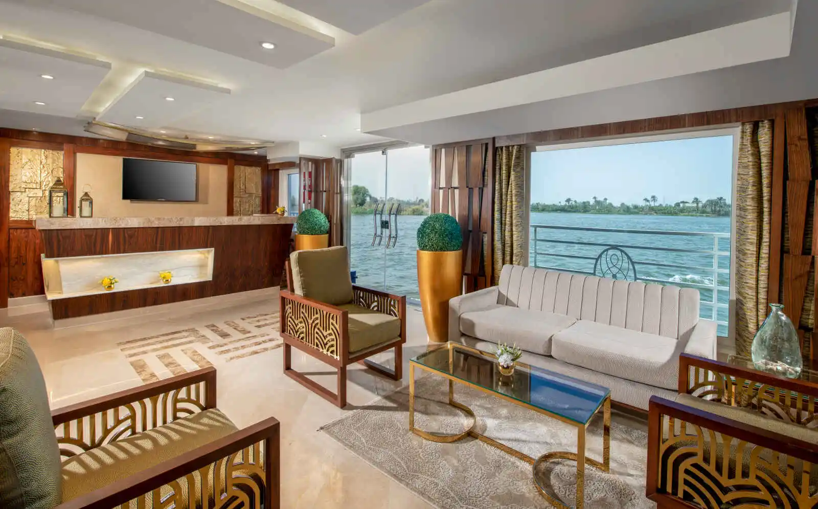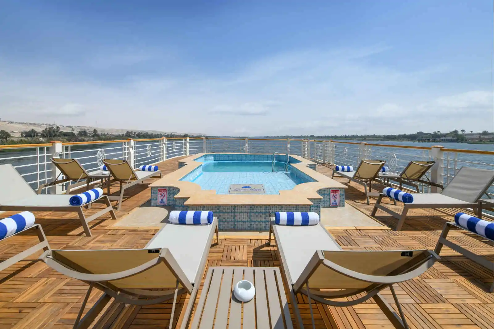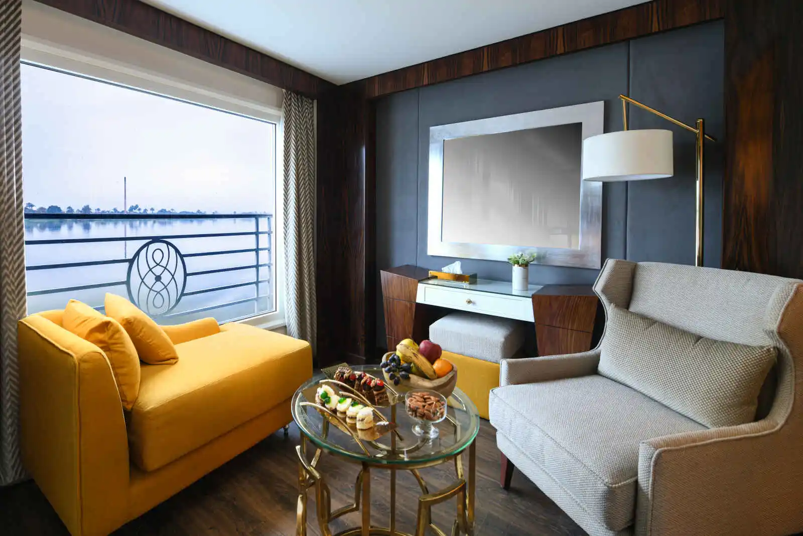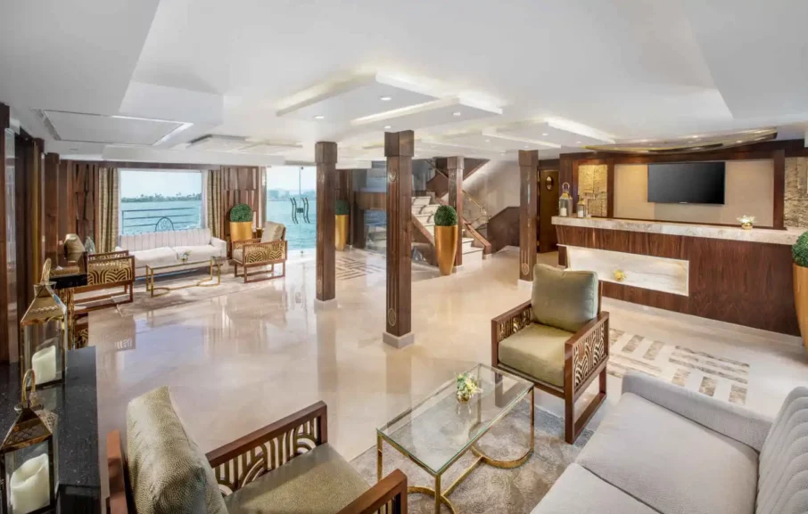 - Les cabines doubles situées sur le pont principal sont équipées de 2 lits simples alors que les cabines du pont supérieur sont équipées d’1 lit double.