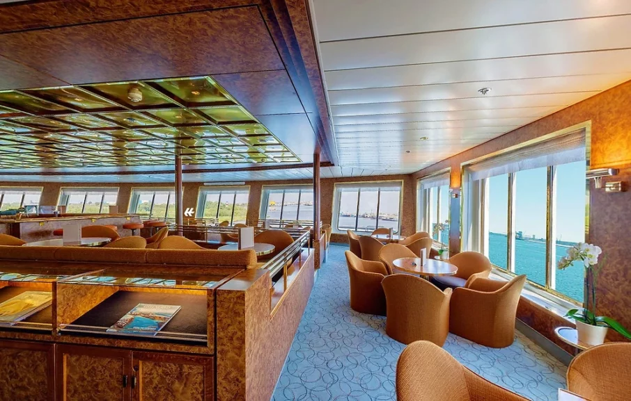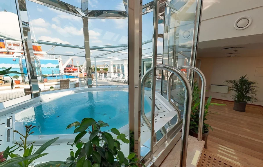 Deux ascenseurs desservent tous les ponts du bateau, facilitant ainsi l’accès aux nombreux espaces de loisirs, d’observation et de convivialité du navire comme le salon-bar ou les espaces détente et la salle de sport du pont 7 : piscine chauffée, bain à remous, sauna, hammam, salle de gymnastique et salon de massage (avec supplément). Le salon Observation du pont 7, situé juste au-dessus de la passerelle de commandement, ainsi que le pont 8, le point le plus élevé du navire, et sa vue panoramique à 360°, offrent deux espaces privilégiés pour profiter confortablement des splendeurs de la navigation. Salle de conférence, centre médical et boutique.