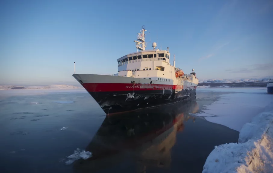 - Le navire fait escale dans 34 communautés portuaires, grandes ou petites, de jour comme de nuit. Les escales durent de 10 à 45 minutes dans les villages et les communes, et quelques heures dans les villes.