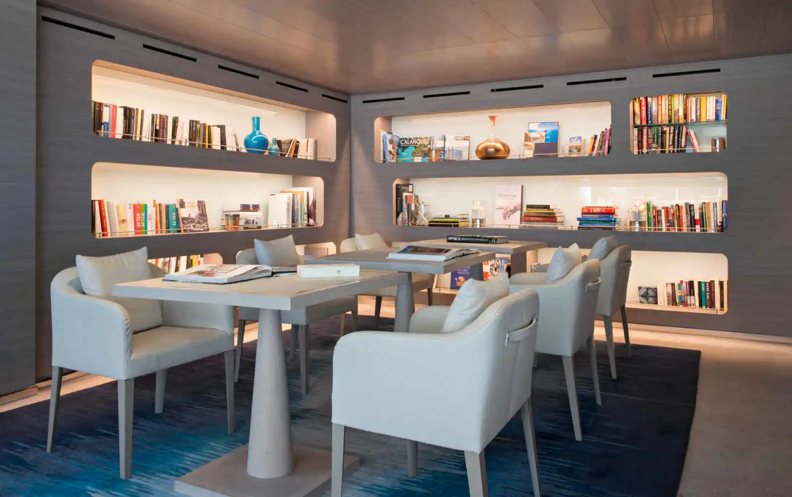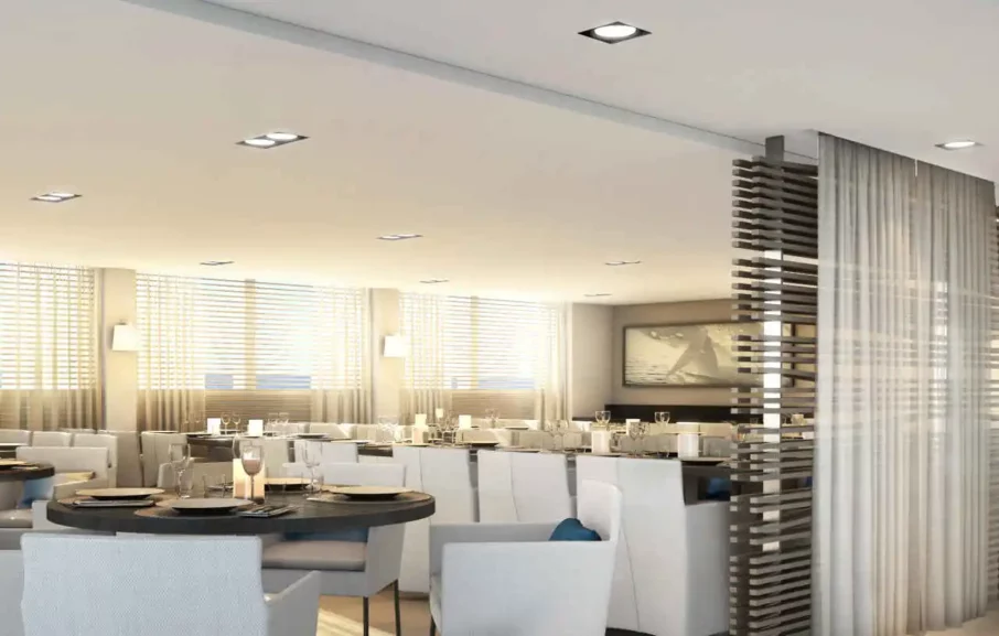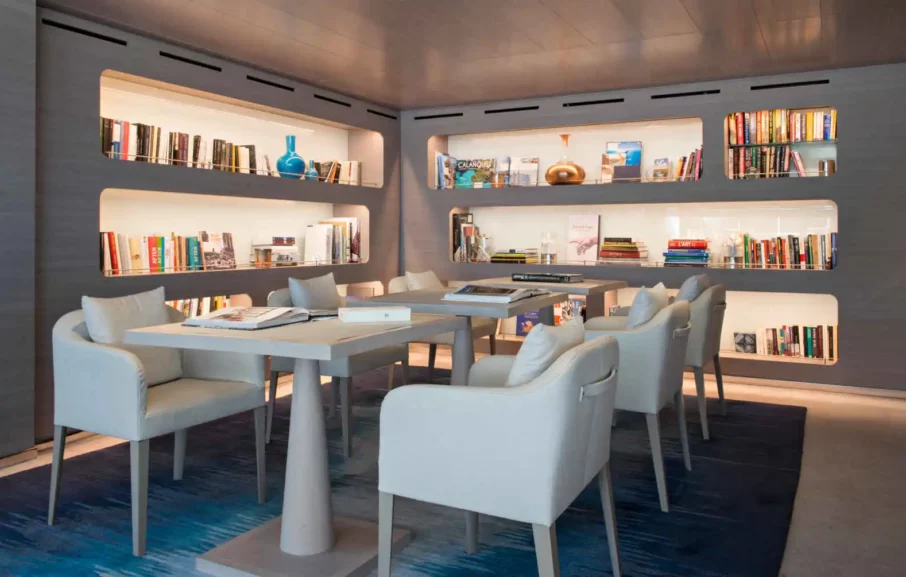 Pour vos moments de détente, vous disposez de plusieurs espaces dédiés. Un salon principal vous accueille avec salon de thé, un bar, une programmation Musicale et une piste de danse. Un salon d’observation panoramique est également à votre disposition ; il comprend une bibliothèque, un accès Internet, un bar, des animations certains soirs et un accès direct à la terrasse panoramique.