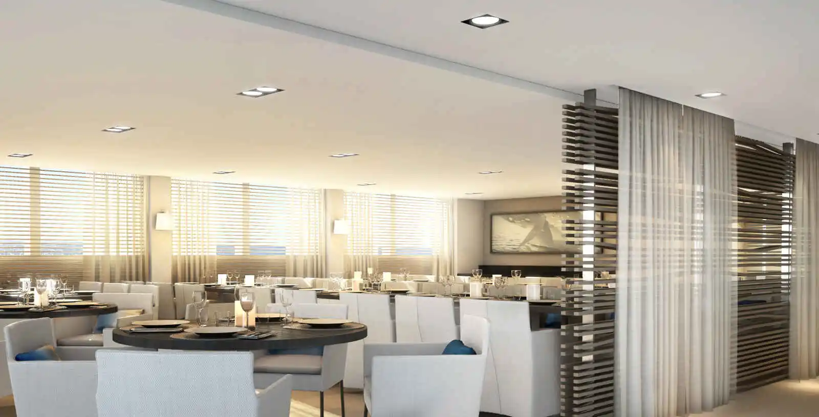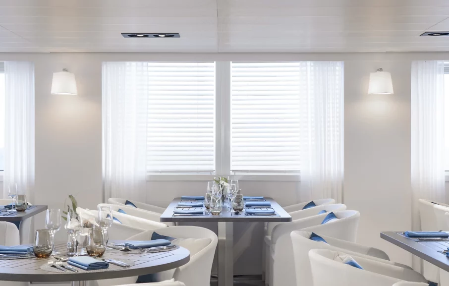 • Restaurant gastronomique sur le pont 2 pour vos petits déjeuners, déjeuners et dîners, servant une cuisine française et internationale. Cave à vins fins ;