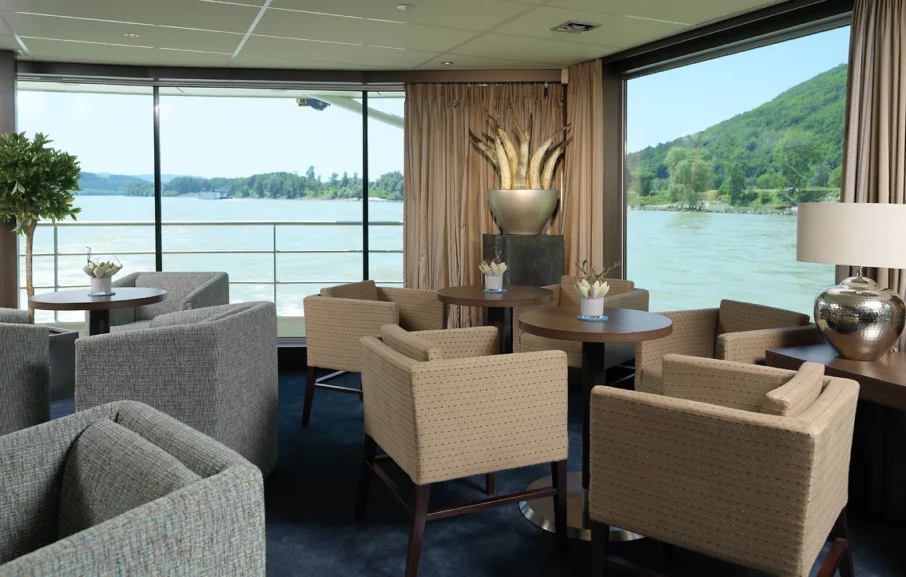 Le M/S Amadeus Elegant compte parmi les bateaux les plus confortables et élégants à naviguer sur le Danube. Très largement ouvert sur le fleuve grâce à ses grandes baies vitrées, les salons, le bar et la vaste salle de restaurant sont décorés avec goût et ménagent de nombreux espaces intimes et particulièrement conviviaux. Sur le pont soleil, équipé de chaises longues et prolongé par un bar, vous profiterez d’un point de vue idéal sur le fleuve.