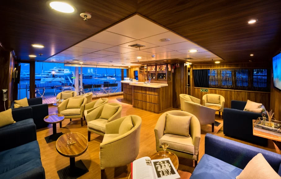 Elle s’organise autour des espaces extérieurs : profitez du pont soleil confortablement installé dans une chaise longue. Le soir, détendez-vous au salon. Une plateforme arrière vous permettra de plonger dans les eaux limpides ou explorer les fonds marins avec masque et tuba.