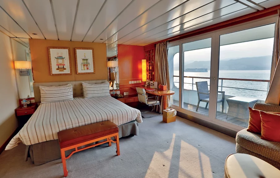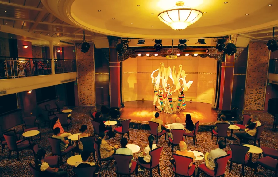 Vous bénéficiez d’une vue panoramique depuis le pont d’observation. À bord, conférences en français, spectacles, initiation à la culture chinoise (cours de tai-chi et de calligraphie chinoise), démonstrations de peinture sur soie et de cérémonie du thé. Le Spa de 300 m² vous accueille pour des soins du corps, soins du visage, manucure, coiffure… (avec supplément). En soirée, spectacles de musique et de troupes chinoises.