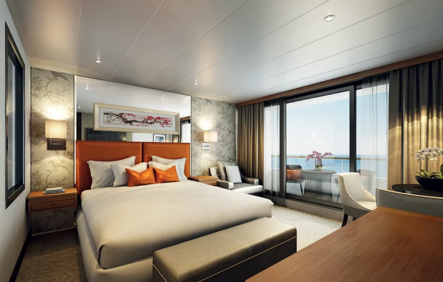 • 20 suites avec balcon privatif (39 m², pont panorama et pont des canots) ;