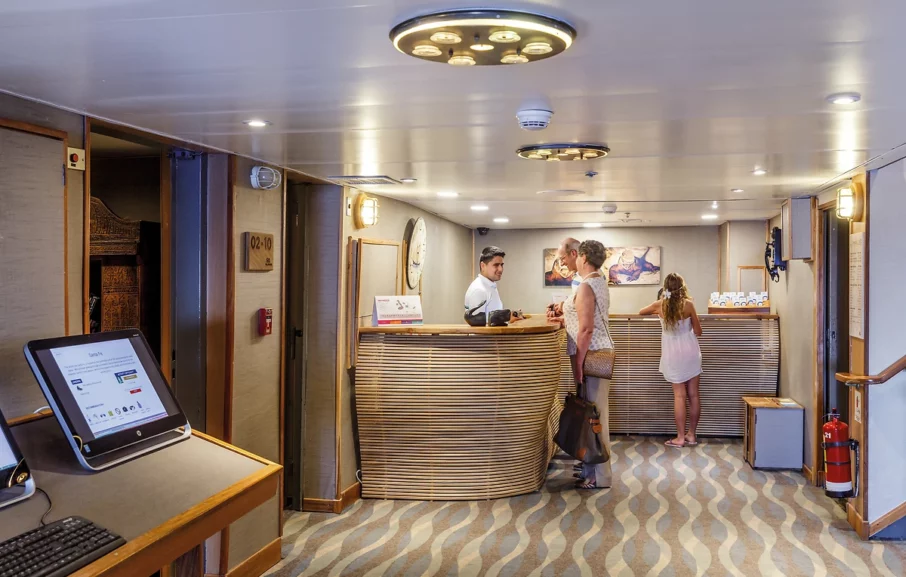 Accès WiFi payant à bord accessible dans les parties communes et depuis les îles principales (env. 80 USD pour la croisière).