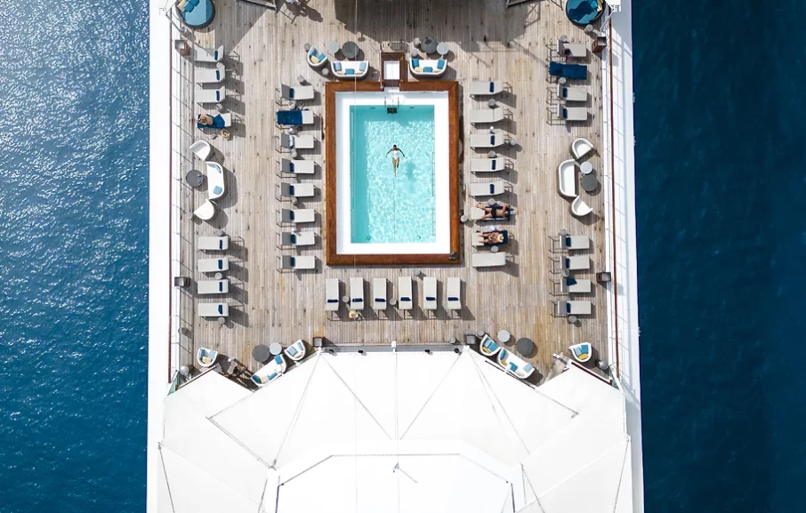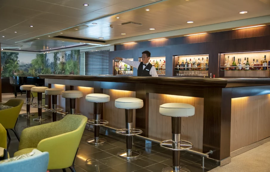 - L’anglais est la langue majoritairement parlée à bord, mais la langue française y est pratiquée. Les annonces et programmes journaliers sont en français et les conférences sont dans les 2 langues.