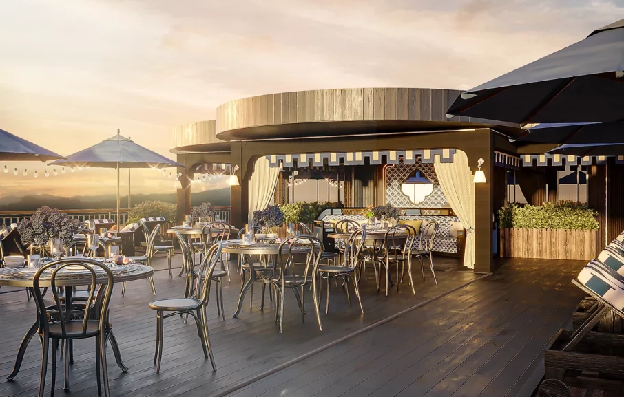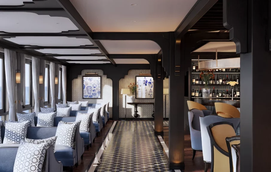 Sur le pont panorama, le vaste restaurant vous accueille dans une atmosphère élégante pour savourer une cuisine inspirée des terroirs traversés comme des traditions gastronomiques du monde. Le midi, buffets variés aux saveurs locales et internationales ; le soir, dîners à la carte orchestrés avec créativité et raffinement. Les boissons sont incluses à bord telles que l’eau minérale, thé, café, bières locales, boissons non alcoolisées. Du vin local est également servi en plus aux repas.