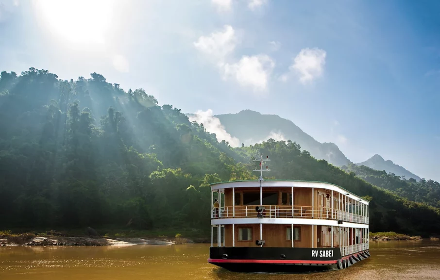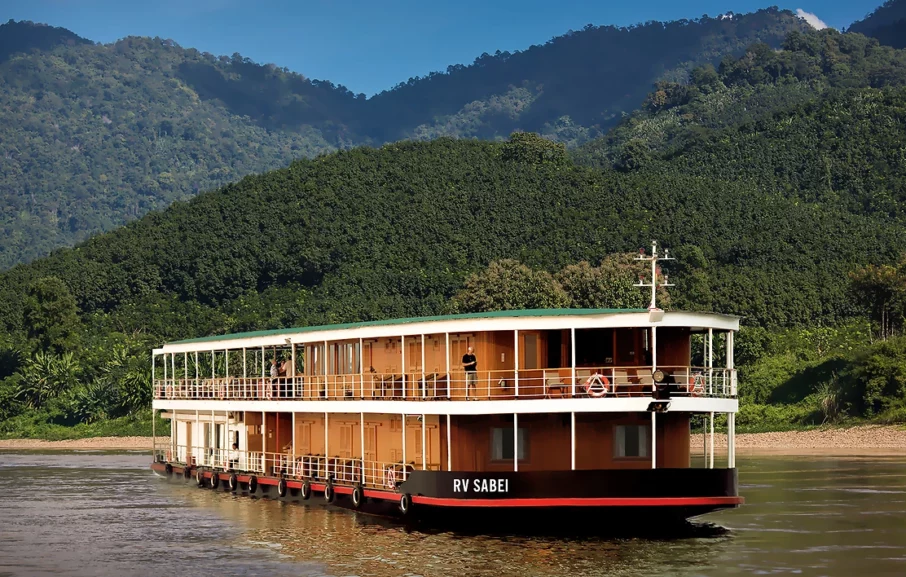 Le R/V Sabei Pandaw, dernier-né de la compagnie, a été construit en 2018 spécialement pour naviguer sur les eaux du haut Mékong entre le Laos et la Thaïlande. Avec sa décoration authentique et raffinée mêlant le teck et le cuivre, ce petit navire de 14 cabines allie intimité et charme coloniale. Vous profiterez ainsi d’une expérience unique dans cette région mythique du Triangle d’Or, entre temples et cités royales, végétation verdoyante et villages typiques.
