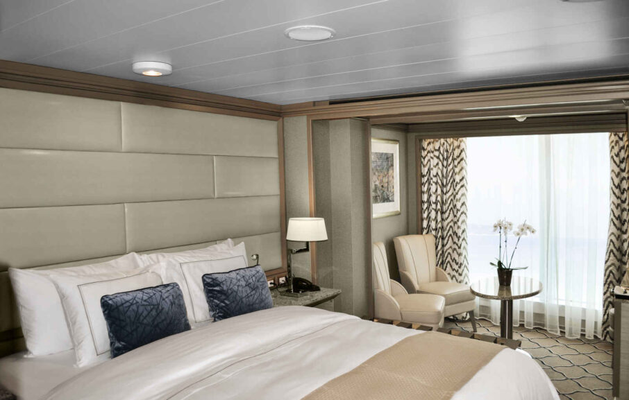 Espace et confort sont les maîtres-mots chez Silversea. Quelle que soit la suite que vous choisirez, vous bénéficierez d’une belle vue sur l’extérieur qui agrandira l’espace déjà appréciable de votre salon. Partout vous constaterez la recherche d’élégance qui caractérise la décoration. Un luxe sensible dans les moindres détails : la salle de bains en marbre, le dressing spacieux, le linge de lit italien mais aussi le champagne et les fruits frais sur demande ou les chocolats disposés dans votre suite. Et bien sûr, le service de majordome qui fera de votre croisière un vrai moment de détente…
