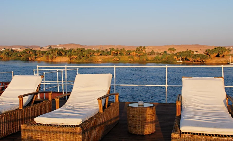 Les suites, situées à la proue et à la poupe du pont supérieur, sauf celle « Oum Kalsoum » sur le pont principal, sont légèrement plus grandes, avec des baies vitrées panoramiques.