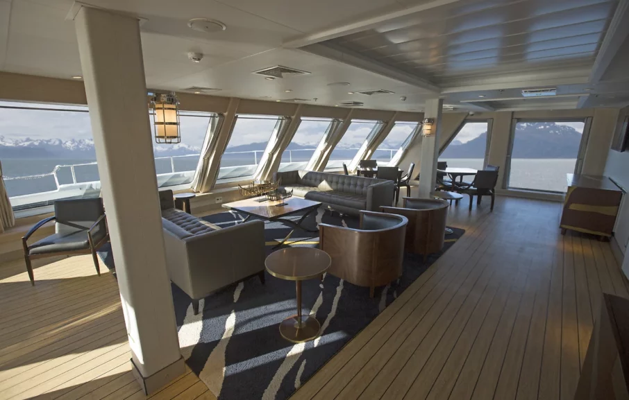 Conçu spécifiquement pour la navigation en terres australes, le tout nouveau Ventus Australis offre le confort idéal pour une exploration au plus près des côtes et des glaciers de la Patagonie. Grâce à ses ponts panoramiques et ses cabines extérieures, vous serez aux premières loges pour admirer la faune et la flore si variées de cette région exceptionnelle qu’est la Patagonie. Sommets enneigés, glaciers bleutés… des paysages inoubliables vous attendent !