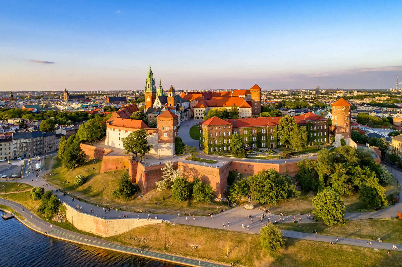 Puis direction Cracovie, première capitale des rois de Pologne dès 1038 ou vous visiterez l’exubérant Château de Wawel. Dans la vieille ville, admirez la basilique gothique Sainte-Marie, la halle aux Draps Renaissance et la baroque église Sainte-Anne. Sortez dans l’ancien quartier juif de Kazimierz, fréquenté par de nombreux artistes. Promenez-vous dans les romantiques jardins royaux de Łazienki et son Palais sur l’eau, tout autour d’une statue de Chopin entourée de roses.