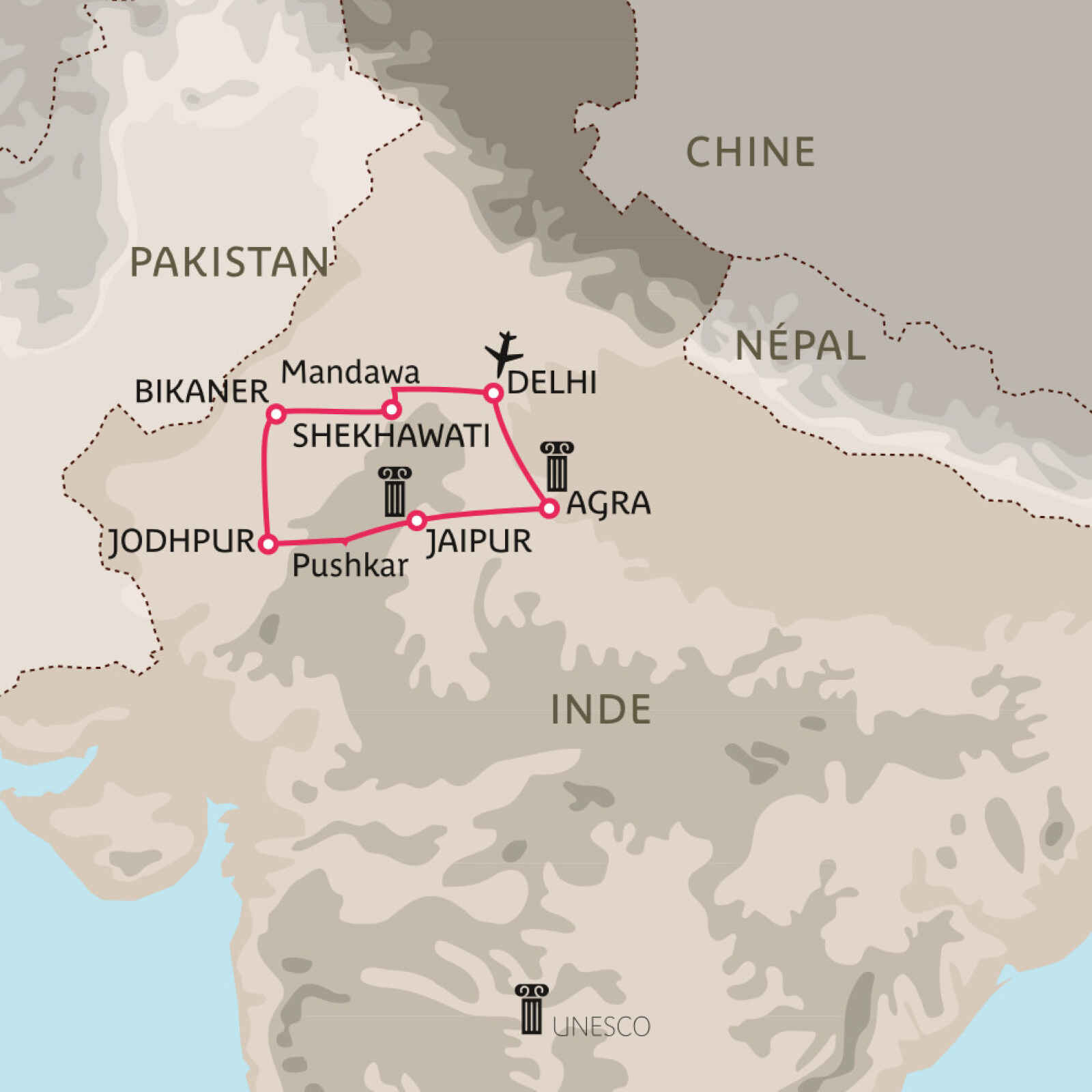 Le pays des maharajahs vous ouvre ses portes : bazars colorés de Delhi, les havelis du Shekhawati, Bikaner et son palais de grès rouge, la ville bleue de Jodhpur, la mystique Pushkar, Jaipur la rose et son Palais des Vents et enfin l’inoubliable Taj Mahal, joyau de marbre blanc. Vivez toute la richesse du Rajasthan entre traditions vivantes, héritage royal et ferveur spirituelle.