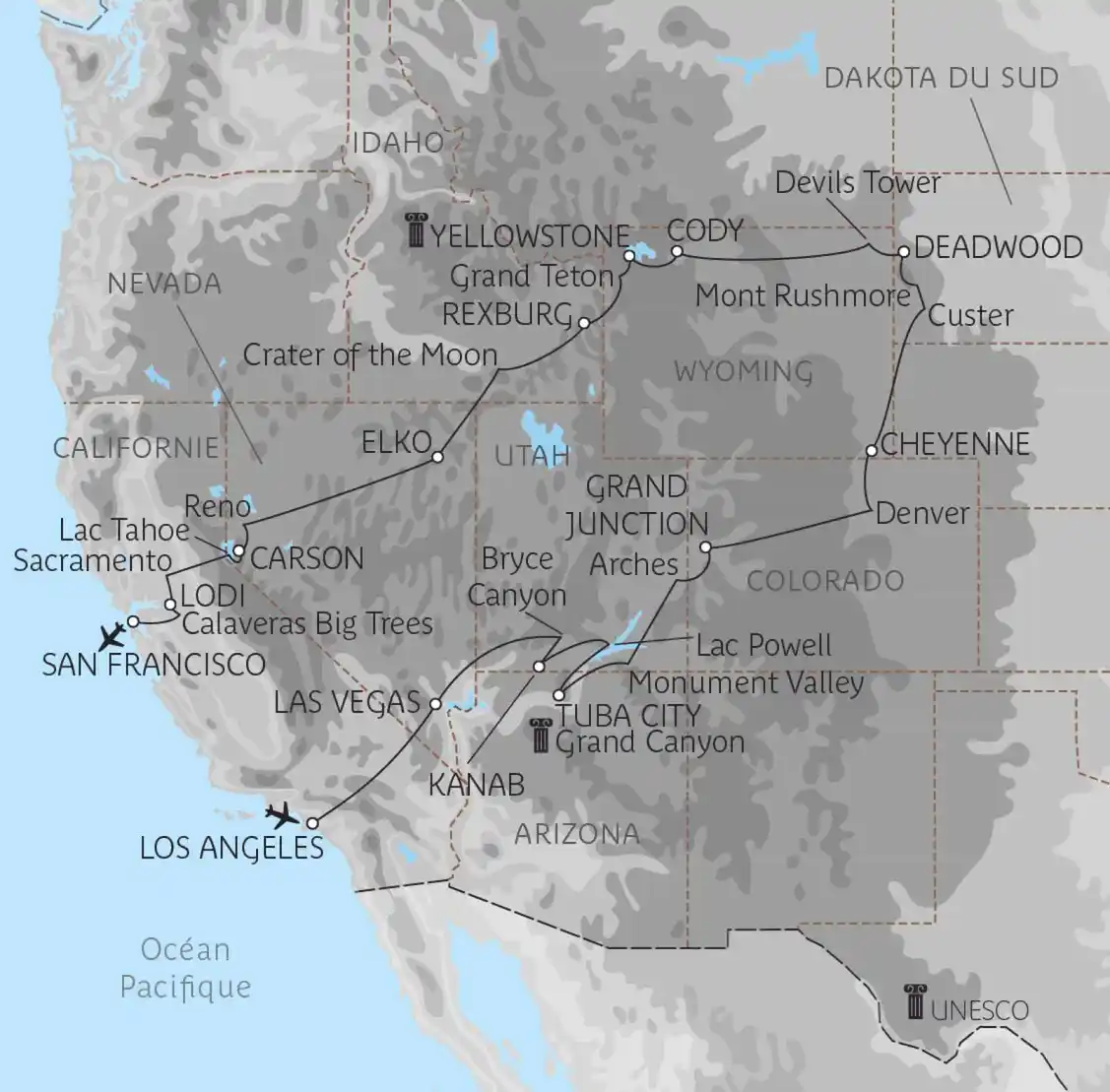Le climat de l’Ouest américain est varié. San Francisco s’apprécie le mieux d’avril à septembre. Dans les Rocheuses, les températures sont contrastées : étés très chauds et hivers très froids. Le sud de la Californie jouit d’un climat méditerranéen, avec des étés chauds et secs et des hivers doux.