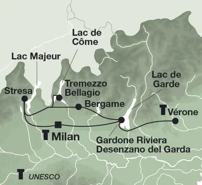 de villes et villages emblématiques : Bellagio, Bergame, Vérone...