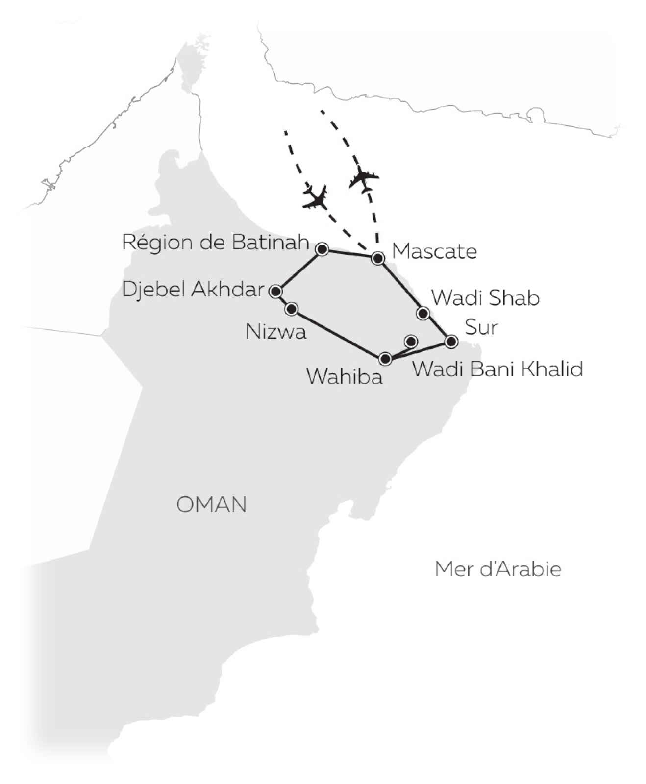 - La visite de Mascate est impossible le vendredi. Suivant votre jour de départ, elle pourra donc avoir lieu le 2e jour au lieu du 3e jour.