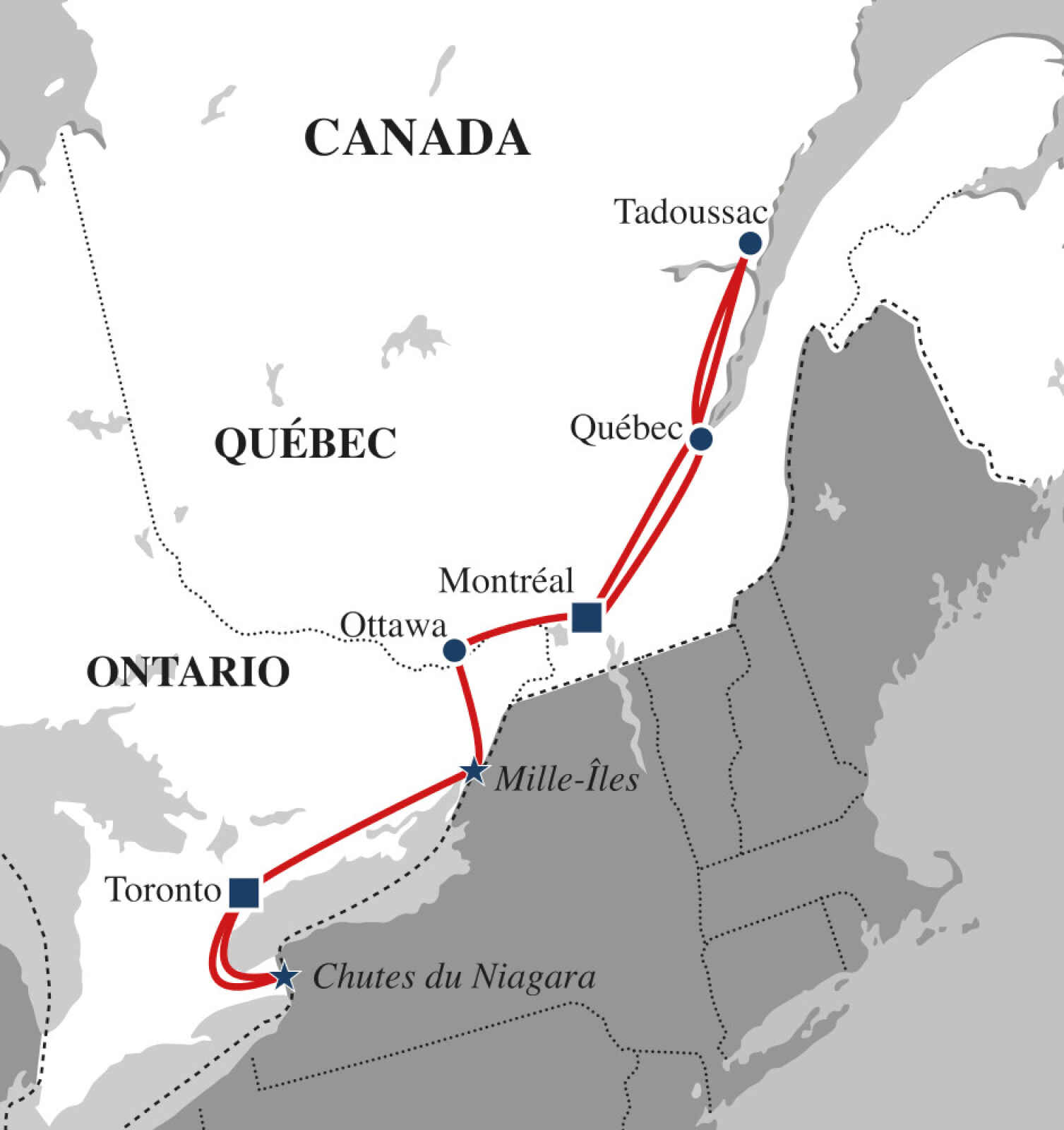 Route vers la région de la Mauricie. Recouvert de forêts, lacs et rivières, ce territoire, autrefois habité par les Amérindiens, reste un havre de paix pour les amoureux de la nature. Déjeuner dans une cabane à sucre où vous serez directement propulsés au cœur d’une tradition locale généreuse autour du sucre d’érable. Tour d’orientation de Trois-Rivières, dont l’histoire fut marquée par l’industrie papetière. Continuation vers Québec, la seule ville fortifiée d’Amérique du Nord, au charme légendaire. Visite guidée pour découvrir l’imposant Château Frontenac, l’hôtel du Parlement du Québec, les plaines d’Abraham, la Citadelle à la Vauban, les fortifications, le pittoresque quartier du Petit-Champlain et la place Royale. Ce joyau du patrimoine mondial associe 400 ans d’histoire et de chaleur humaine sur un site naturel de toute beauté. Dîner libre. Nuit à l’hôtel.