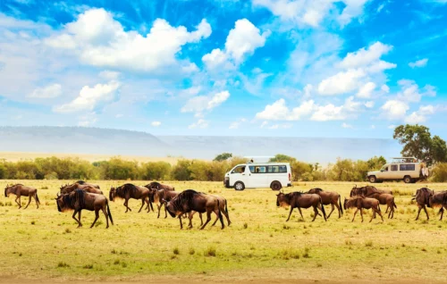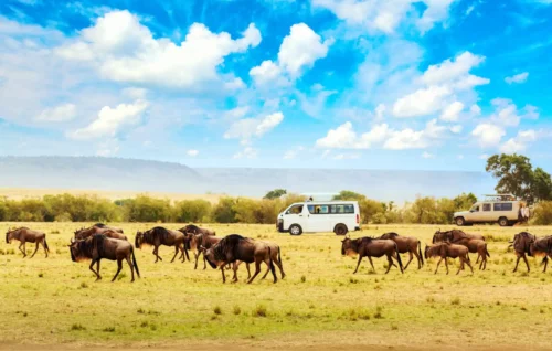 Départ vers le Masai Mara, la plus célèbre des réserves naturelles du Kenya. On y trouve en nombre tous les animaux du Big Five, et bien d’autres espèces. Installation et déjeuner au lodge. Safari dans l’après-midi, jusqu’au coucher du soleil. Vous pourrez y voir gnous, impalas, gazelles, zèbres, éléphants, etc. Dîner et nuit au camp.