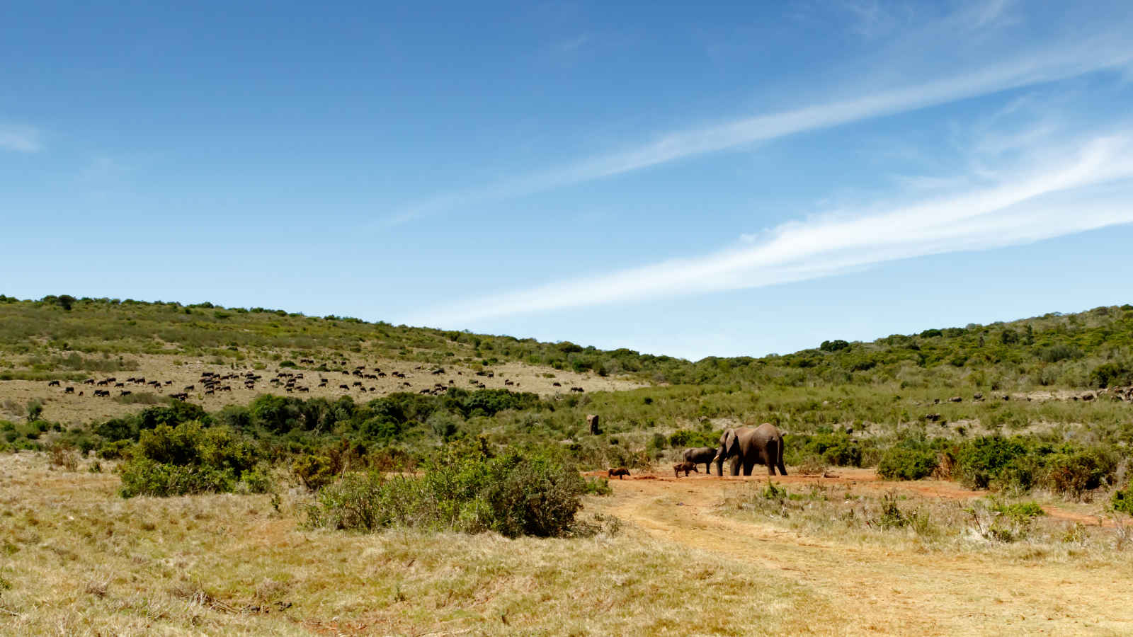 Éléphants et buffles sur un champ, Port Elizabeth, Afrique du Sud