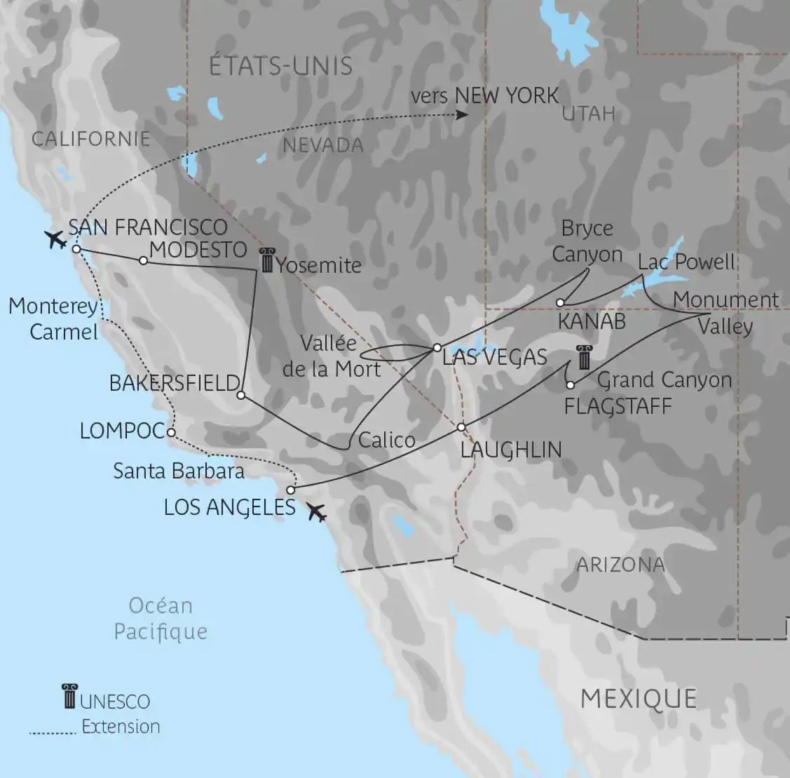 Le climat de l’Ouest américain est varié. San Francisco s’apprécie le mieux d’avril à septembre. Dans les Rocheuses, les températures sont contrastées : étés très chauds et hivers très froids. Le sud de la Californie jouit d’un climat méditerranéen, avec des étés chauds et secs et des hivers doux. New York se visite en toute saison ; au printemps et à l’automne, les températures sont douces et agréable, l’hiver peut être froid tandis que juillet et août sont chauds et secs.