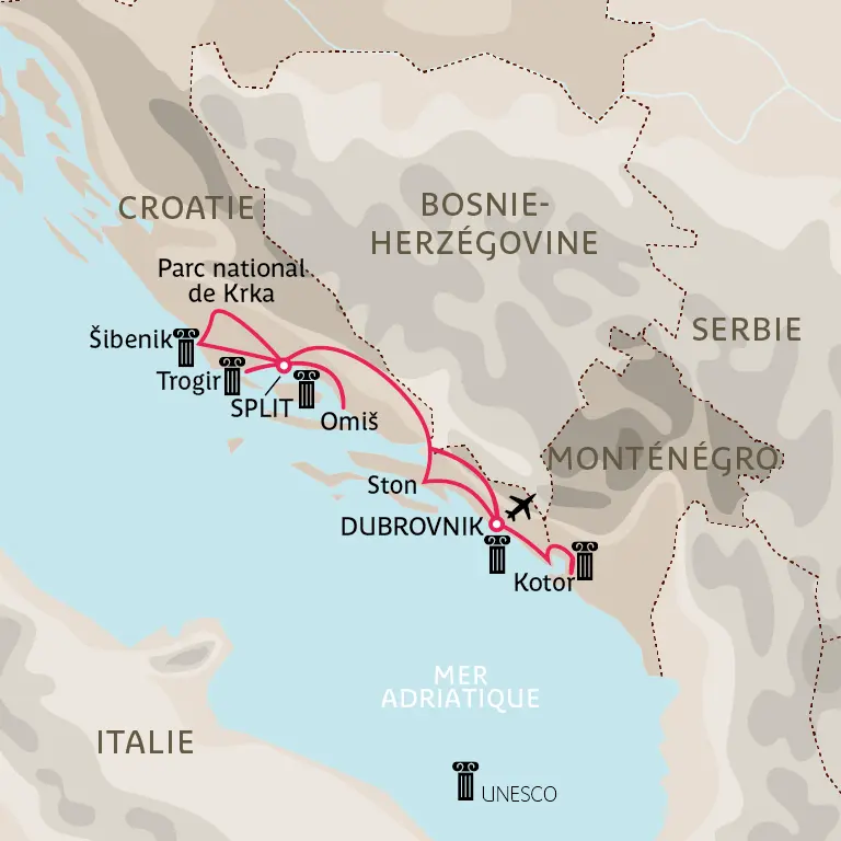 au départ de 2 lieux de séjour, Dubrovnik et Split.