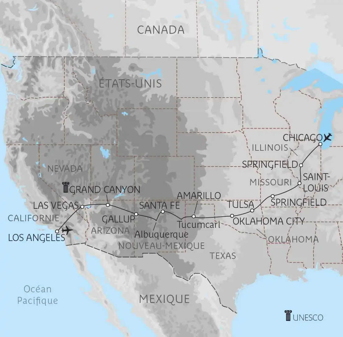 La Route 66 traverse 8 États et file sur presque 4 000 km. Les températures et précipitations varient d’un endroit à un autre du fait de l’immensité du territoire. Privilégiez les mois de mai/juin et septembre/octobre, aux températures clémentes. En juillet et août, les températures peuvent atteindre les 40 °C à certains endroits.