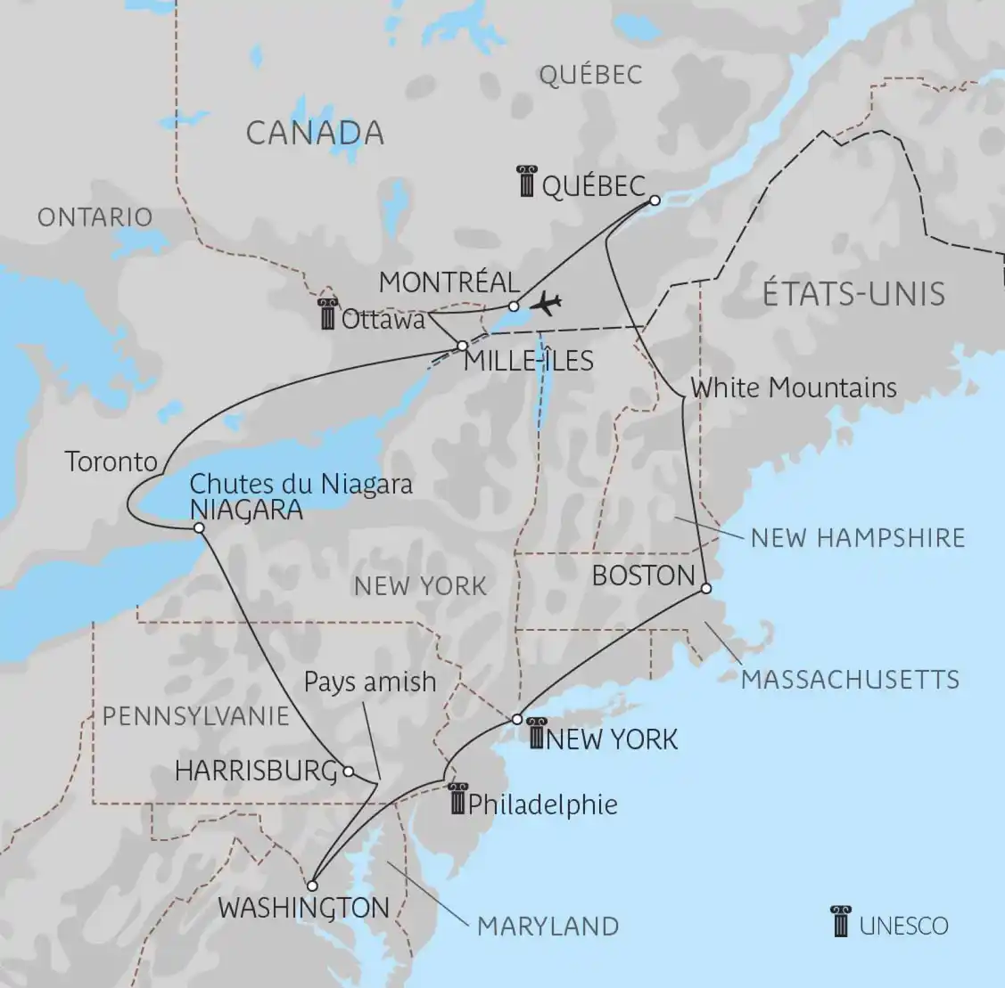 La meilleure saison pour profiter des merveilles de la nature canadiennes avec un grand N et des villes américaines riches en histoire et en gratte-ciel est de mai à octobre. Les mois de juillet et août sont les plus chauds et la chaleur peut être éprouvante dans les grandes villes. Au printemps et à l’automne, les paysages sont magnifiques, notamment avec les couleurs de l’été indien en septembre/octobre, et les températures vous seront clémentes pour profiter du grand air. Pensez donc à réserver suffisamment à l’avance pour cette période !