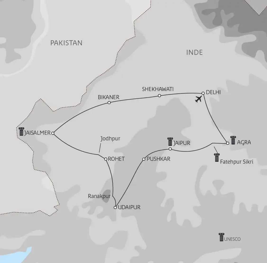 Partez à la découverte du Rajasthan, de villes en déserts, et laissez-vous séduire par ses magnifiques paysages et son singulier patrimoine bâti. De temples millénaires en balades insolites, de palais démesurés témoins de la richesse de ses Maharajahs en forteresses ayant forgé la légende des guerriers Rajputs, cet État d’Inde du Nord abonde de splendeurs.