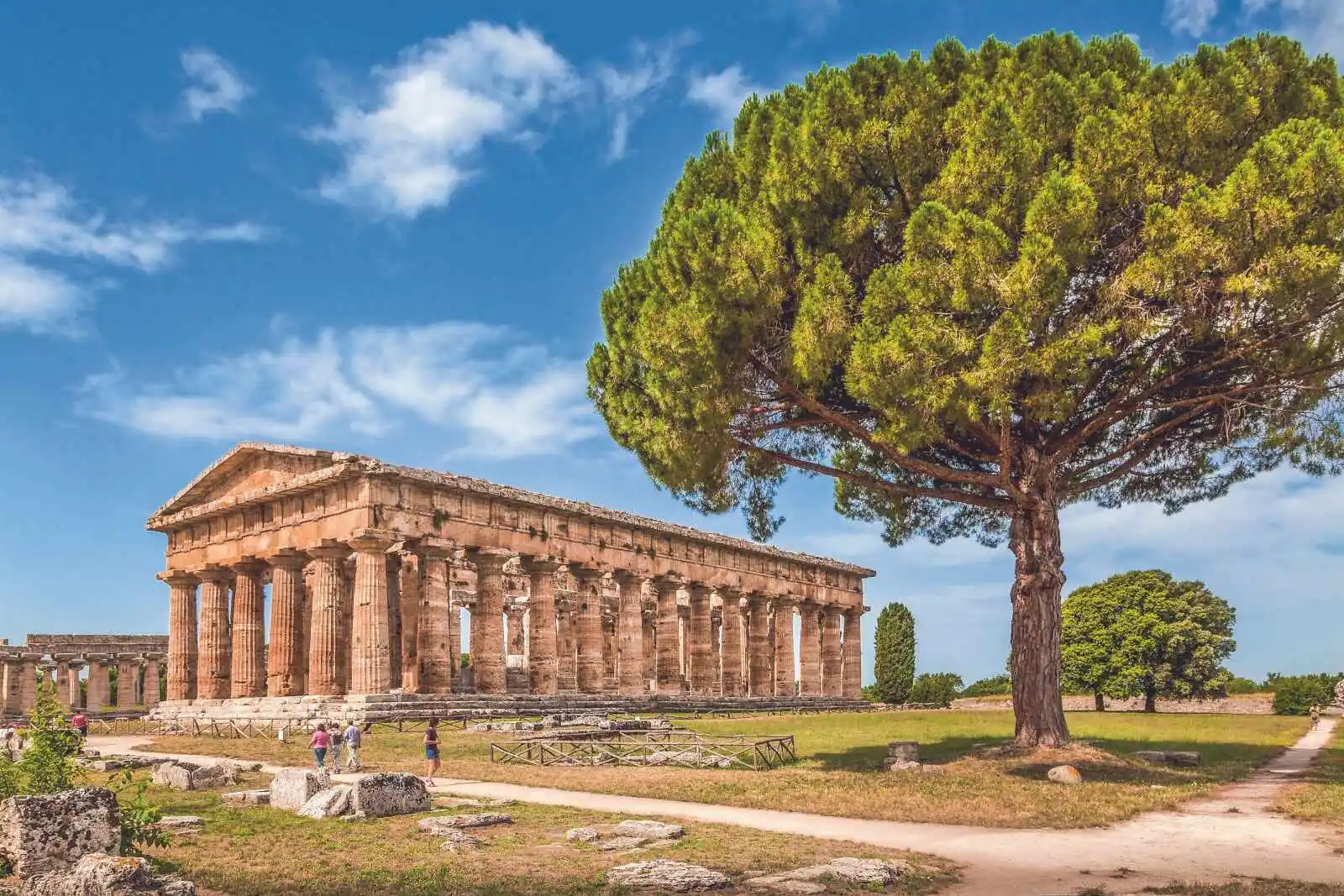 Le matin, départ pour Salerne. Visite de la cathédrale de style roman dont l’intérieur richement décoré contraste avec un extérieur assez sobre. Continuation jusqu’à Paestum. Découverte du site antique