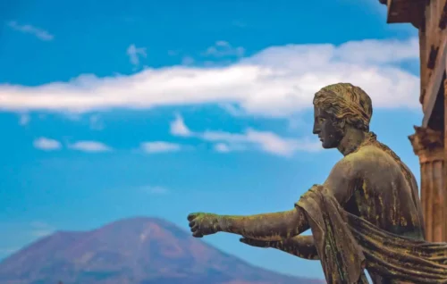 Départ pour Pompéi. Visite de l’ancienne cité romaine entièrement ensevelie lors de la terrible éruption du Vésuve en 79 après J.-C. et conservée intacte grâce au linceul de cendres qui l’a recouverte. Cette superbe cité permet de reconstituer avec précision la vie quotidienne des Romains de l’Antiquité. Halte dans une ferme pour un déjeuner léger, avec dégustation du vin Lacryma Christi, issu de vignes situées sur les pentes du volcan. L’après-midi, excursion au mont Vésuve : montée en autocar jusqu’à 1 000 m d’altitude, puis ascension à pied jusqu’au sommet (1 281 m) qui offre une vue splendide sur le golfe de Naples. Retour à Castellammare di Stabia. Dîner et nuit à l’hôtel.