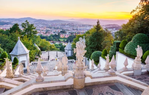 Route vers Braga, capitale de la province du Minho. Visite de la célébre cathédrale de Bom Jesus do Monte, lieu de pèlerinage emblématique de la région. Niché sur les collines orientales de la ville, ce sanctuaire se distingue par son escalier baroque monumental, qui semble s’élancer vers le ciel. Inscrit au patrimoine mondial par l’UNESCO depuis 2019, il incarne un mélange unique de spiritualité et d’architecture. Déjeuner en cours d’excursion. Poursuite de la route vers Guimarães, ville fortifiée considérée comme le berceau de la nation portugaise, où naquit le premier roi du pays, Afonso Henriques. Flânerie dans ses ruelles médiévales pleines de charme. En fin d’après-midi, visite de la célèbre Quinta de Aveleda, domaine viticole situé à Penafiel, où vous dégusterez le fameux vinho verde, vin frais et léger, typique de la région. Retour à Porto. Dîner et nuit à l’hôtel.