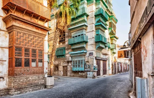 Visite du musée Al Tayebat, qui raconte 2 500 ans d’histoire de Jeddah, la cosmopolite. Poursuite avec l’incontournable Corniche qui longe la mer Rouge, la mosquée Al Rahmah (visite extérieure), structure en forme de dôme turquoise construite sur la mer et ancrée au rivage par une passerelle – d’où son surnom la « mosquée flottante ». Arrêt devant la fontaine du roi Fahd, avec son jet d’eau de 312 m. Déjeuner. Visite du quartier historique d’Al-Balad (UNESCO). Visite à pied le long des ruelles étroites à la découverte des fameuses maisons-tours aux balcons colorés portant le nom de moucharabiehs. Découverte intérieure de l’une des maisons. Temps libre pour flâner dans les ruelles. Dîner et nuit.