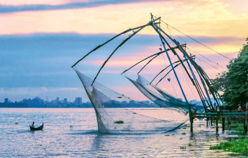 Route pour Kochi et visite du quartier de Matancherry : le marché aux épices, le quartier juif avec sa synagogue, le Palais hollandais, les boutiques d’antiquités. Déjeuner en cours de visite. Spectacle de danses kathakali. Dîner et nuit.