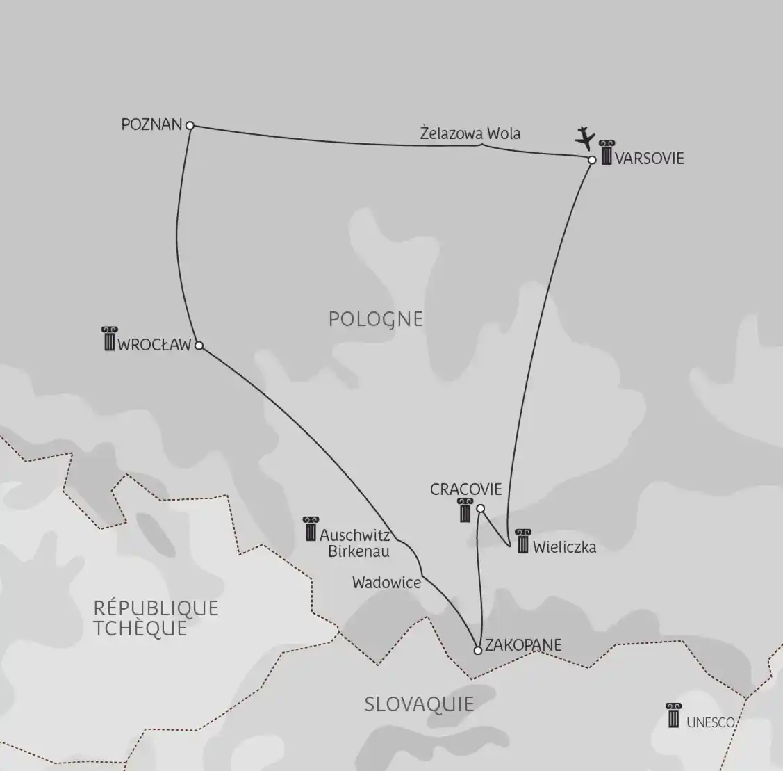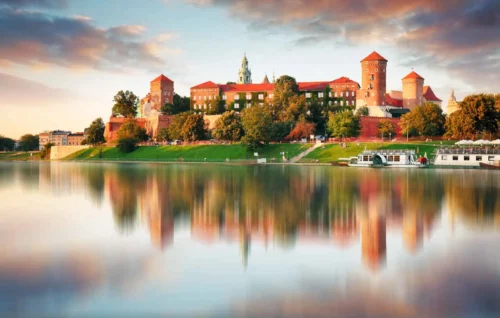 Découverte de la colline royale du Wawel, avec entrée au château Renaissance et à la cathédrale des sacres. Promenade à travers la vieille ville : l’église Notre-Dame avec son célèbre retable gothique de Veit Stoss, la Halle aux draps, l’église Sainte-Anne, chef-d’œuvre baroque, la cour gothique à arcades de l’université Jagellone, fondée en 1364, les fortifications et la Barbacane. Déjeuner. Après-midi libre. Le soir, petite promenade à travers l’ancien quartier juif de Kazimierz, devenu un quartier branché où s’installent de nombreux artistes. Dîner dans un restaurant juif, avec concert de musique klezmer. Nuit à l’hôtel.