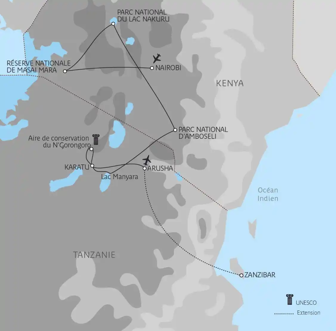 Le Kenya bénéficie d’un ensoleillement quasi-permanent, tandis que le nord de la Tanzanie possède un climat agréable (15-25 °C) avec toutefois des nuits fraîches. Dans les deux pays, la saison des pluies court d’avril à début juin.