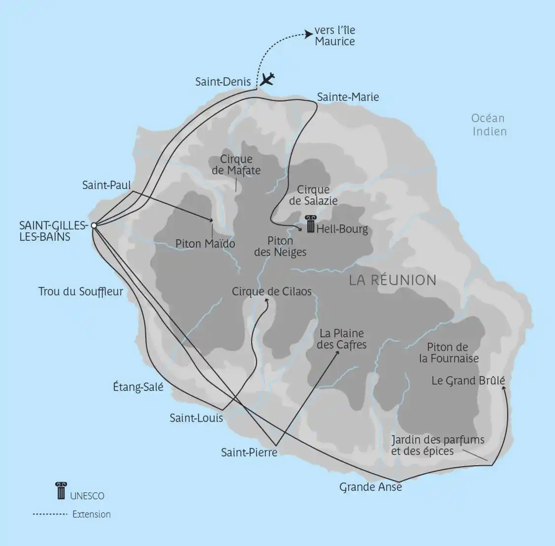 Les températures sont agréables toute l’année grâce à l’ensoleillement permanent. La saison sèche, de mai à novembre, est la meilleure période ; l’été austral, de novembre à avril, est la saison la plus chaude mais aussi la saison des pluies : averses de courte durée et surtout localisées en montagne. L’île peut être sujette aux cyclones de janvier à mars.