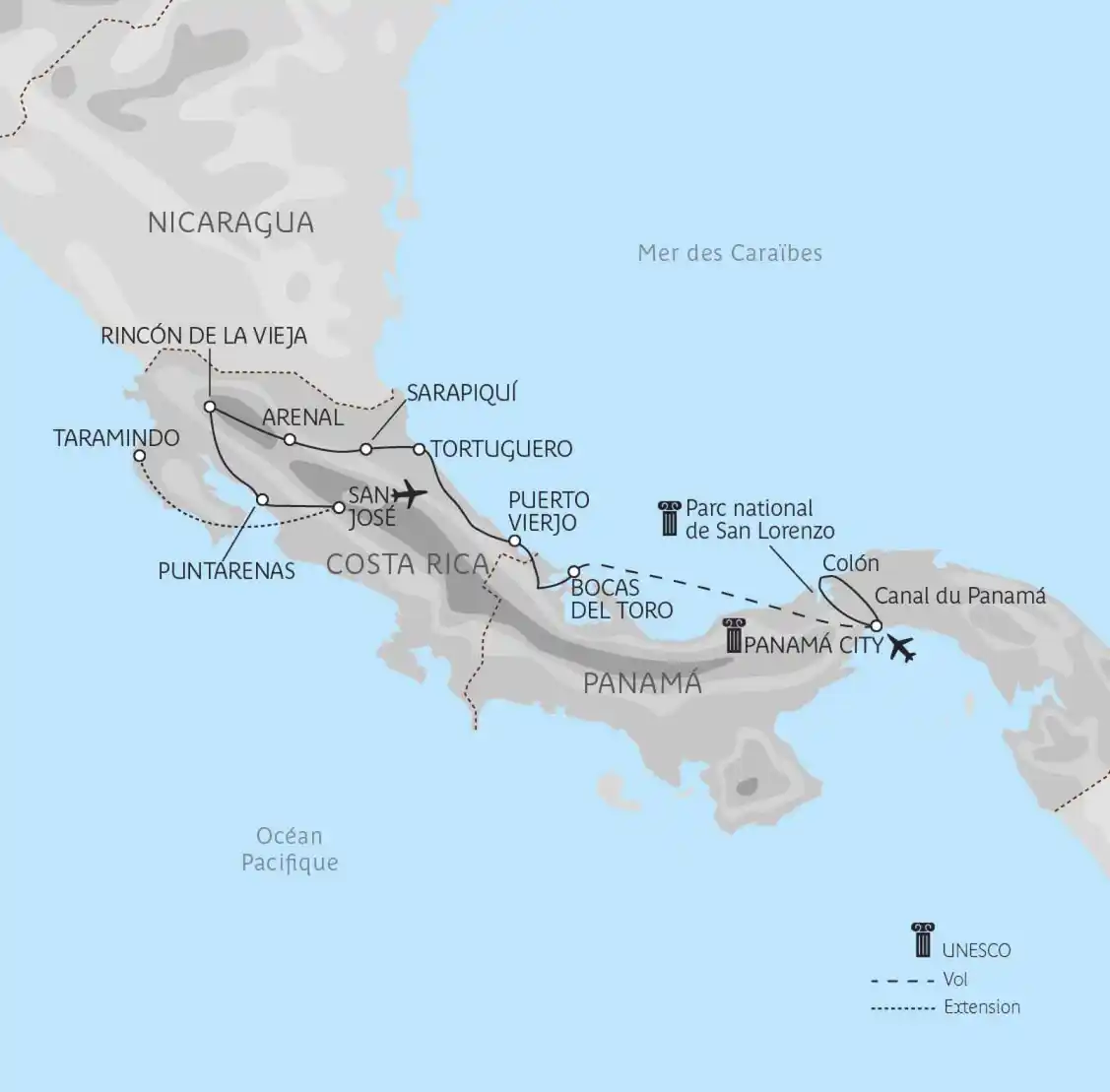 La meilleure période est la saison sèche, de janvier à avril au Panamá et de novembre à avril au Costa Rica. La diversité des reliefs entraîne des climats changeant selon les régions : au centre, climat tempéré frais sur les hauteurs ; au nord-ouest, chaud et sec ; au sud-ouest, à l’est et au nord, climat équatorial chaud et humide.