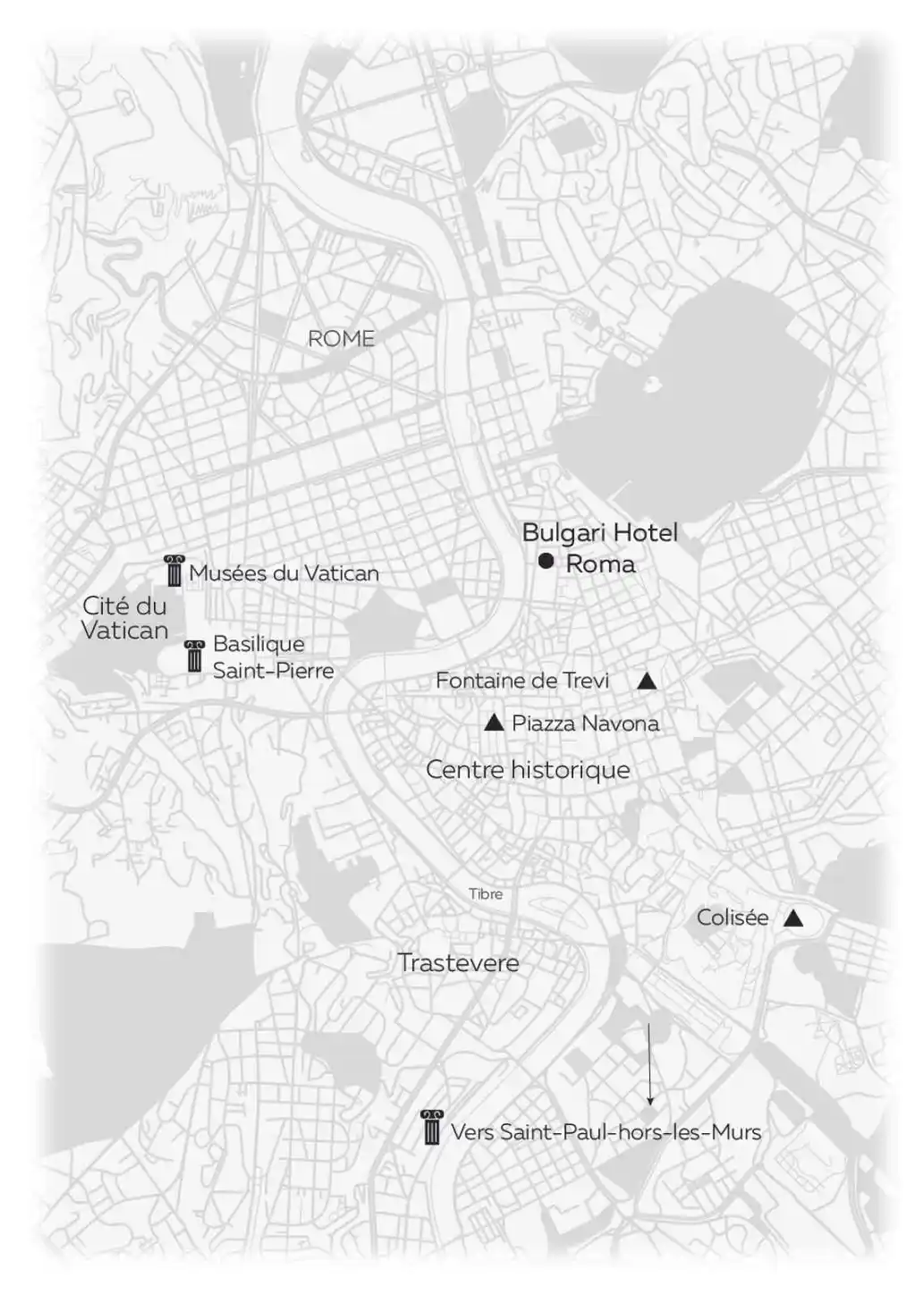 Parmi les expériences que propose l’hôtel, nous vous recommandons une série de promenades à travers la ville selon le prisme de la maison Bulgari, ainsi vous découvrirez quelle broche a été inspirée par la place Saint-Pierre, quel collier reflète la forme du château Saint-Ange…