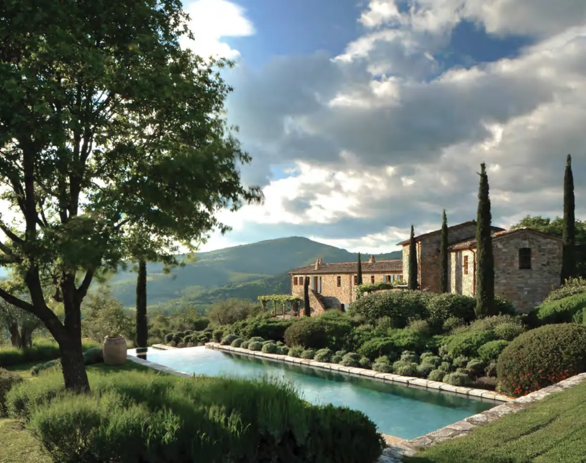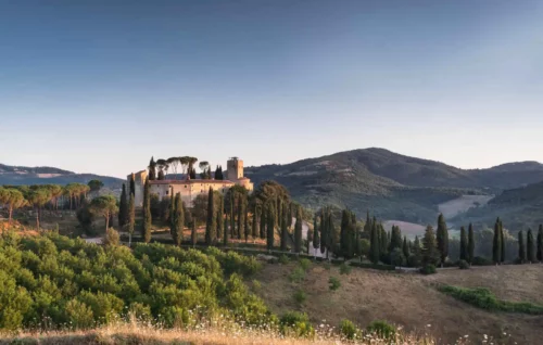 Outre la forteresse, cet immense domaine – 1 500 hectares de collines plantées de cyprès et de pins parasols – a conservé une église, une ancienne tour de guet, des écuries abritant une quarantaine de chevaux andalous avec leur manège, et 8 anciens corps de ferme magnifiquement restaurés en maisons princières. Elles peuvent accueillir jusqu’à 14 personnes, chacune avec sa piscine, son jardin, son caractère et son majordome.