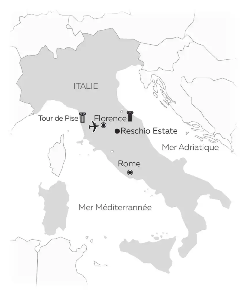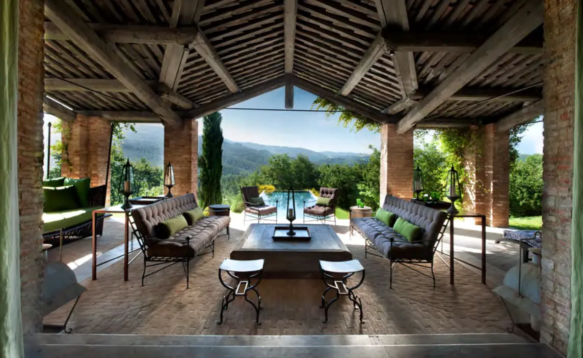 Le contraste entre l’austérité des pierres médiévales et la douceur du luxe contemporain s’apprécie sur la terrasse du restaurant perché dans les remparts du château et qui propose une gastronomie d’ingrédients bio dans une pure tradition toscane. Le Palm Court Bar, avec son ravissant jardin d’hiver sous une verrière végétalisée, embrasse d’immenses volumes. Une Italie old-fashioned que l’on retrouve aussi dans le Bar Centrale, avec ses serveurs encostumés prêts à vous concocter un cocktail racé, et au restaurant Alle Scuderie qui distille, sous ses hauts plafonds, son huile d’olive dorée et ses vins de terroir avec la sensualité et l’esprit que cette région douée pour la vie peut offrir.