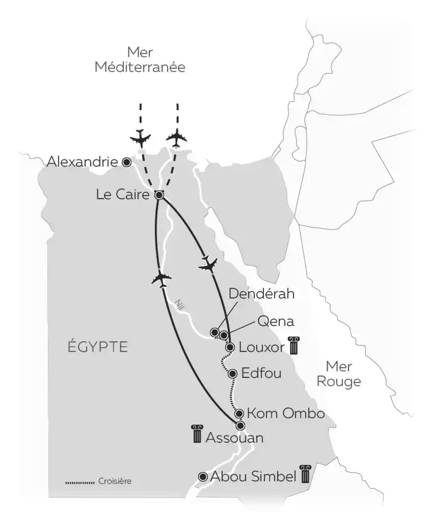 Avant ou après votre croisière en Haute-Égypte, retrouvez toute l’élégance et la grande tradition de service signées Four Seasons dans le premier véritable hôtel de luxe d’Alexandrie, le Four Seasons Hotel Alexandria at San Stefano ***** luxe.Ce programme inclut également les excursions privées avec guide francophone suivantes :une demi-journée de visite (le Musée gréco-romain, les catacombes et l’amphithéâtre romain) et demi-journée de visite de la Grande Bibliothèque et de son musée des Antiquités.