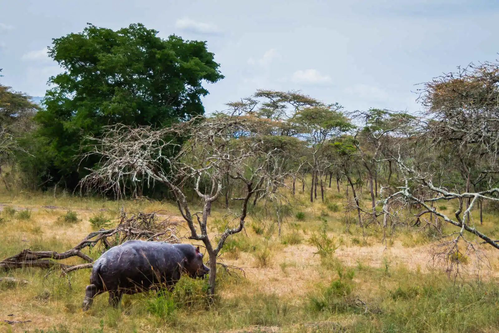 Journée dédiée à la recherche de la faune locale. À bord d’un bateau à moteur naviguant sur le lac Rwanyakazinga, vous pourrez observer des hippopotames et de nombreuses espèces d’oiseaux ou dans un 4 × 4 lors de safaris de jour et de nuit, pour peut-être trouver des lions (réintroduits en 2015), léopards, zèbres, girafes, buffles, crocodiles… Déjeuner, dîner et nuit au camp.⇔