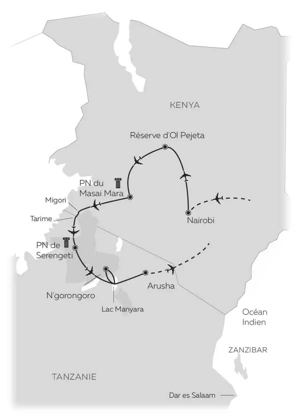 - À Nairobi et à partir de votre arrivée au lac Manyara en Tanzanie (8e jour) vous êtes accompagné d’un chauffeur-guide francophone.